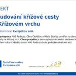 Vybudování křížové cesty (zhotovení betonových patníků a jejich osazení reliéfy) včetně doprovodné infrastruktury na Křížový vrch. Projekt počítá s instalací informační cedule na Křížovém vrchu i s vytvořením informačních letáků. Slavnostní otevření bude doprovázet kulturní akce (měkká akce) pro širokou veřejnost.